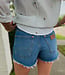 Description: 2.5-inch Inseam, 5-Pocket Styling, Distressed Detailing.
