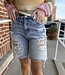 NON STRETCH DENIM, SUPER HIGH RISE WAIST, DISTRESSED DETAIL, FRAYED HEM, BERMUDA SHORTS