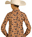 A boys’ long sleeve western button-up featuring a warm brown camo print for a rugged, outdoors-inspired look. Designed with pearl-style snaps, chest pockets, and a comfortable fit, this shirt is perfect for everyday wear, school, or life on the ranch. Read more..