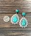 2.5" Long, Turquoise Post Earrings * Natural stone may vary in size, color or shape * 2.5" long turquoise post earrings * Each earring 16 grams weight * Alloy metal, antique silver plate * Nickel, Lead & Chrome free