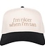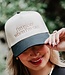 two-toned hats 5 panel structured fabric hats fabric backing (not mesh) snapback adjustable sizing 65% polyester, 35% cotton