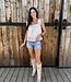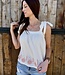 - Floral Embroidered Shoulder Ribbon Tie Top - Sleeveless - Square Neck - Back Smocking
