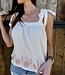 - Floral Embroidered Shoulder Ribbon Tie Top