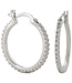 A medium silver toned set of hoop earrings lined with clear stones with a latch back.