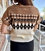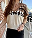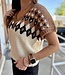 V NECKLINE SHORT SLEEVES DROP SHOULDER RIBBED TRIM FAIR ISLE MULTICOLOR PATTERN KNIT PULLOVER SWEATER WOOL BLEND 42% ACRYLIC 29% NYLON 21% POLYESTER 8% WOOL