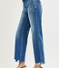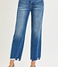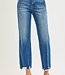 HIGH RISE ANKLE STRAIGHT JEANS DISTRESSED HEM DETAIL