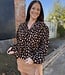 LEOPARD PLISSE TEXTURE NOTCHED NECK TIE BLOUSE