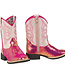 These Krissy boot are made with hot pink sequin material on the lower and light pink iridescent PU upper with hot pink stitching that is triple stitched.