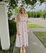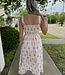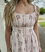 SQUARE NECKLINE SLEEVELESS EDGE LACE TRIM DETAIL FRONT HOOK AND EYE CORSET BODICE FLORAL STRIPE PATTERN LINED MIDI DRESS SHELL:90%RAYON 10%NYLON LINING:100%POLYESTER