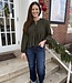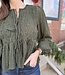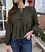 TEXTURED WOVEN SMOCKING DETAIL TIE FRONT BLOUSE