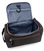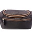 Distinguished look Men's large Dopp kit with inside hook easy for hanging while traveling. Nylon with plastic zippers. Polyester Lining. Beautiful rich colors. bold red Zipper pulls. Large outside pocket w/multiple interior pockets.