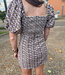 This floral mini dress features a structured square neckline and exaggerated puff sleeves with elasticized cuffs, complemented by vertical seaming for shape and a smocked back panel for a flexible, flattering fit. Model is 5'6" and wearing a small. Read more..