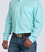 solid cotton plain weave, long sleeve button-down, white square buttons, logo embroidery