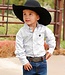 Dress your little cowboy in style with this white and grey paisley print cotton shirt from CINCH. Crafted from a plain weave fabric, it features a left chest pocket, signature embroidered logo, and classic white buttons for a polished western look.