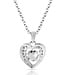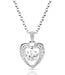 A petite heart shaped necklace with an outer frame in a bright silver tone set with bright clear stones in the curves of the heart leading down to tiny microbeads. A center brilliant round clear stone is held by a slender arm on either side holding it in Read more..