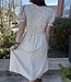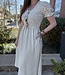 STRIPE FRONT BOW DETAIL SMOCKING MIDI DRESS