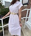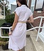 COLLARED SHORT SLEEVE EXTENDED SLEEVE BUTTON DOWN FUNCTIONAL BUTTONS BELTED BELT LOOPS POCKETS STRIPE PATTERN NOT LINED LINEN BLEND 80% RAYON 20% LINEN