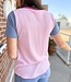 A RIBBED TOP FEATURING A COLOR BLOCK DETAIL, ROUND NECK, SHORT SLEEVES, AND A CURVED HEM. * MODEL IS WEARING SIZE SMALL