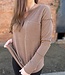 SOLID RIB KNIT PULLOVER TOP FEATURING A NOTCHED NECK DETAIL, CHEST POCKET, DROP SHOULDER, EXPOSED SEAMS, LONG SLEEVES, THUMBHOLE, CURVED HEM, AND A RELAXED FIT.