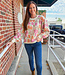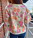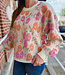 - Oversized Floral Textured Printed Knit Sweater Top - Round Neck - Drop Shoulder