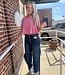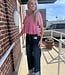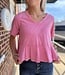 - Lace Trim Detail Mineral Washed V-Neck Knit Top
