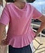 - Lace Trim Detail Mineral Washed V-Neck Knit Top - Ruffled Hem - Short Sleeve