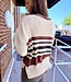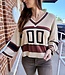 VARSITY STYLE 3/4 SLEEVE V-NECK KNIT SWEATER