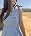 A LINE FIT AND FLARE DIAMOND BOW RIBBON DENIM DRESS WITH RIBBON TIE STRAP