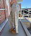 Camouflage print knit barrel pants featuring a casual wide-leg silhouette