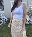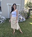 This elegant bias-cut skirt features a delicate floral print on a smooth fabric, offering a fluid drape and ethereal movement. Designed with a streamlined silhouette, it pairs beautifully with a simple blouse for an understated elegance