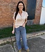 This blouse stands out with its drop shoulder design, offering a relaxed, modern silhouette that drapes beautifully. The understated style pairs effortlessly with both jeans and skirts, making it a versatile choice for any