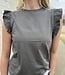 Elevate your daily rotation with this soft jersey tee, defined by voluminous ruffled cap sleeves. It features a classic ribbed crew neckline and a relaxed, boxy silhouette for comfort. Pair this charming, feminine staple with high-waisted denim for an instantly polished, chic daytime aesthetic.