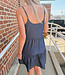 A charming tiered dress featuring delicate spaghetti straps and a relaxed silhouette. Pair with strappy sandals for a feminine look.