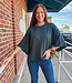 Solid elbow sleeve top featuring wide relaxed silhouette. Unlined. Knit. Non-sheer. Lightweight.