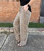 - Animal Print Linen Wide Leg Pants - Leopard - Elastic Waist - Side Pockets - Drawstring