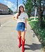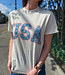 Show off your red, white, and blue in style with this USA Stars Tee, featuring varsity block lettering filled with star motifs and outlined in patriotic red. It's bold, nostalgic, and a total hit for 4th of July, Memorial Day, and summer concert season. Read more..