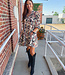 Floral Printed 3/4 Sleeve Shirt Dress with Flared Skirt