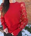 SOFT THIN YARNED SWEATER BODY WITH ORGANZA FLOWER BALLOON SLEEVES TOP