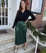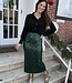Green skirt with full coverage of sequins adds a vibrant shine and texture